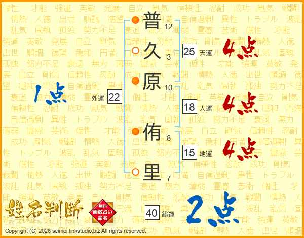 普(12画)久(3画)原(10画) 侑(8画)里(7画)
