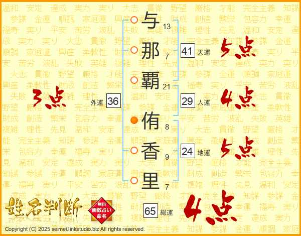 与那覇侑香里さんの総運は65画の4点!