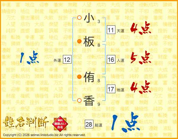 小板侑香さんの天運は11画の4点!