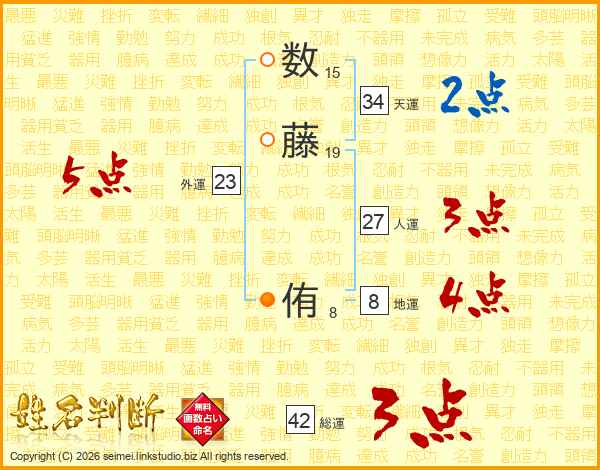 数(15画)藤(19画) 侑(8画)