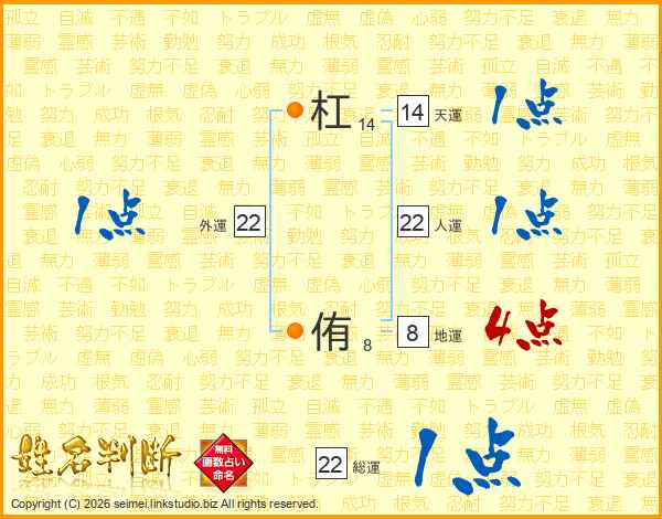 杠侑さんの総運は22画の1点!