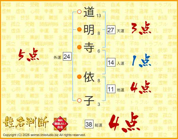 道(13画)明(8画)寺(6画) 依(8画)子(3画)