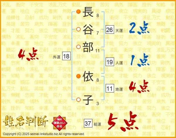 長(8画)谷(7画)部(11画) 依(8画)子(3画)