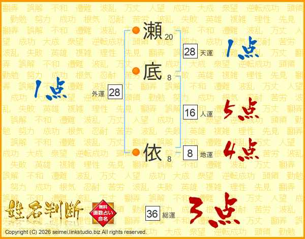瀬底依さんの総運は36画の3点!