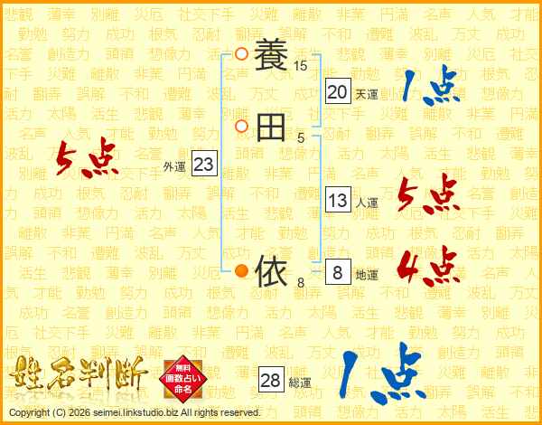 養田依さんの天運は20画の1点!