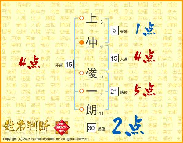 上仲俊一朗さんの総運は30画の2点!