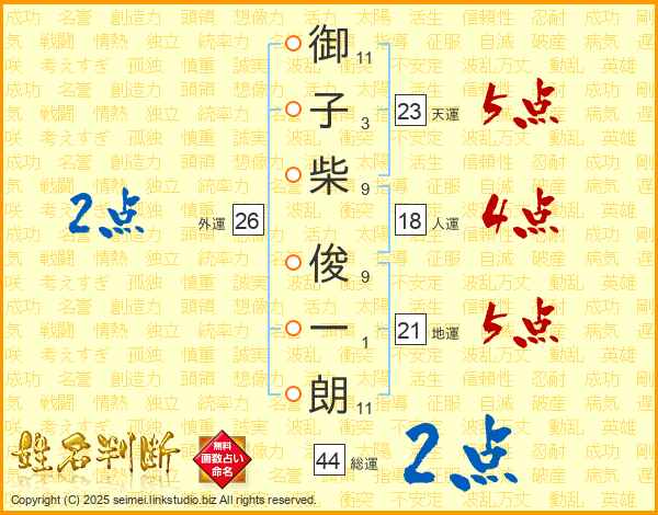 御子柴俊一朗さんの総運は44画の2点!