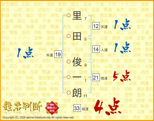 里田俊一朗さんの総運は33画の4点!