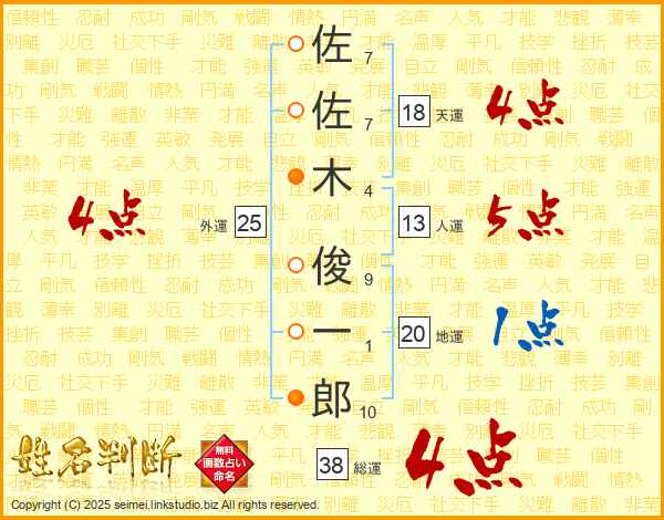 佐佐木俊一郎さんの総運は38画の4点!