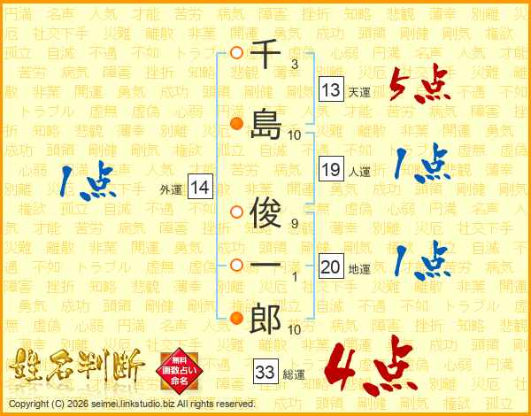 千島俊一郎さんの天運は13画の5点!