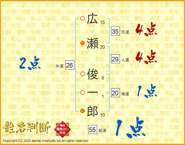 広瀬俊一郎さんの天運は35画の4点!