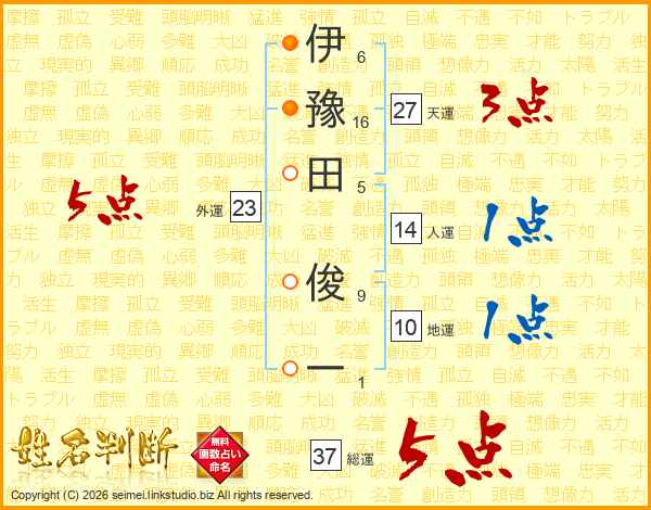 伊豫田俊一さんの総運は37画の5点!