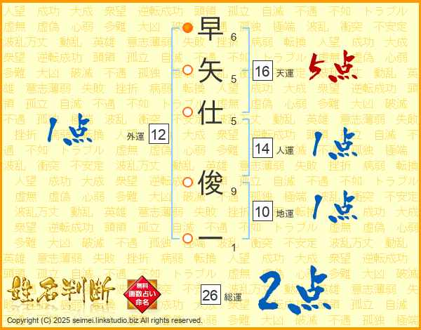早矢仕俊一さんの総運は26画の2点!
