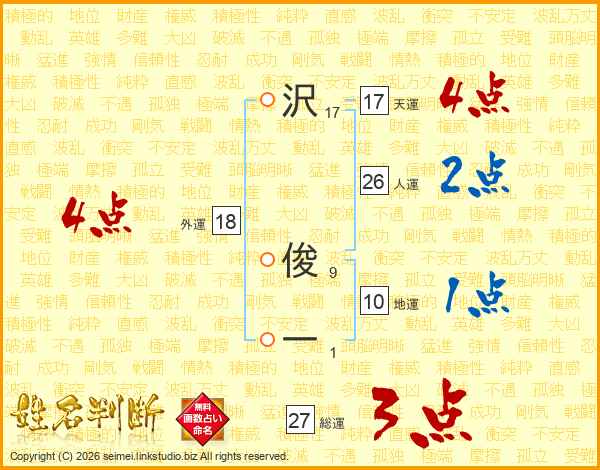 沢俊一さんの人運は26画の2点!