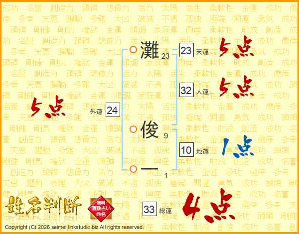 灘俊一さんの総運は33画の4点!