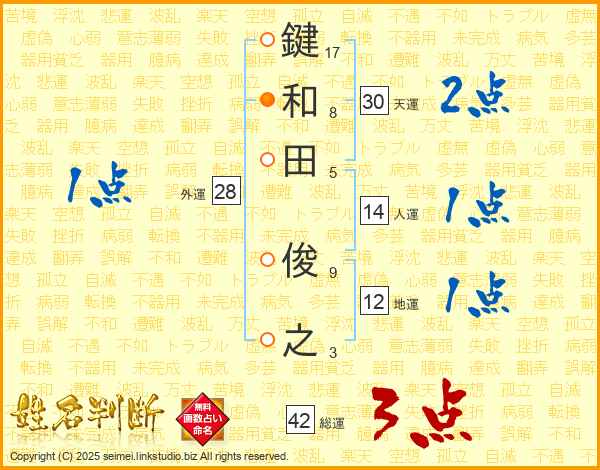 鍵和田俊之さんの天運は30画の2点!