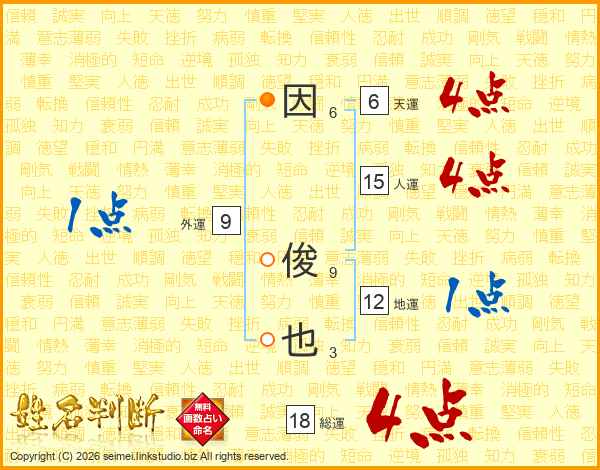 因俊也さんの総運は18画の4点!