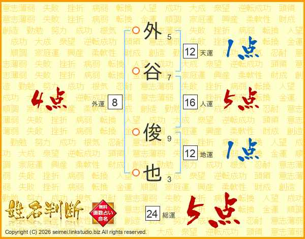 外谷俊也さんの総運は24画の5点!