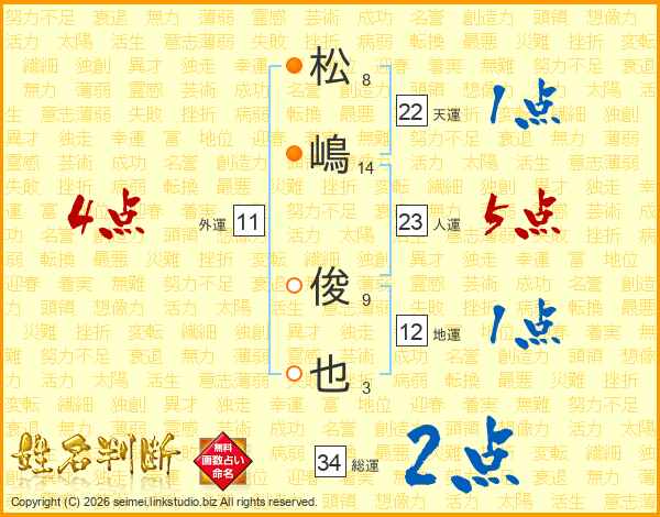 松嶋俊也さんの人運は23画の5点!