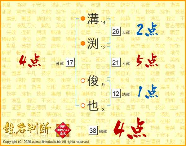 溝渕俊也さんの総運は38画の4点!
