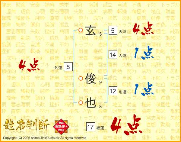 玄俊也さんの総運は17画の4点!