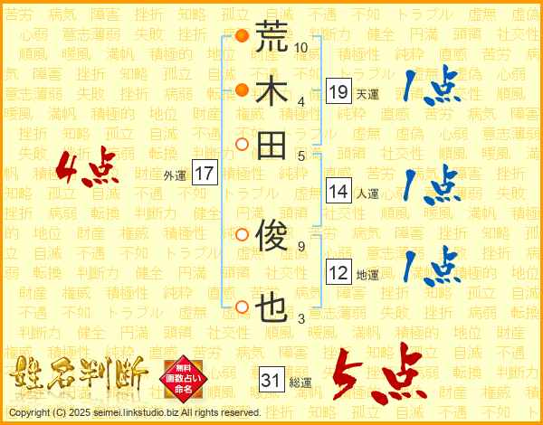 荒木田俊也さんの総運は31画の5点!