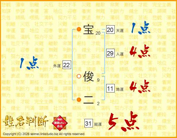 宝俊二さんの総運は31画の5点!