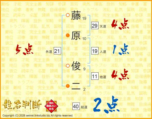 藤原俊二さんの総運は40画の2点!