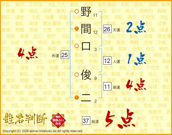 野間口俊二さんの総運は37画の5点!