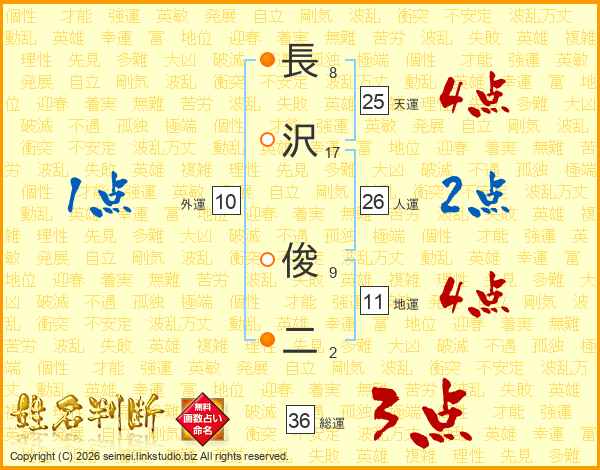 長沢俊二さんの総運は36画の3点!