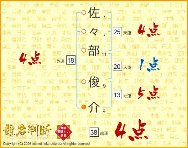 佐々部俊介さんの総運は38画の4点!