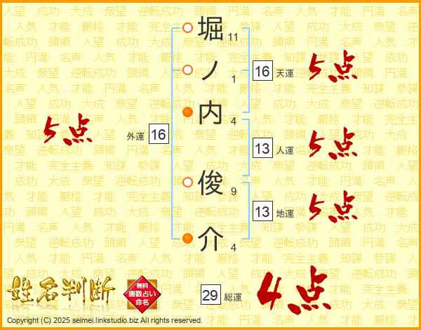 堀ノ内俊介さんの総運は29画の4点!