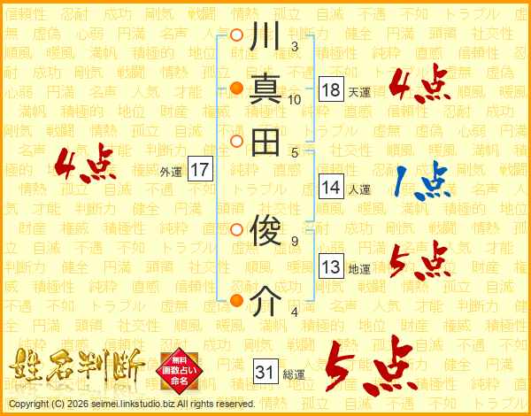 川真田俊介さんの総運は31画の5点!