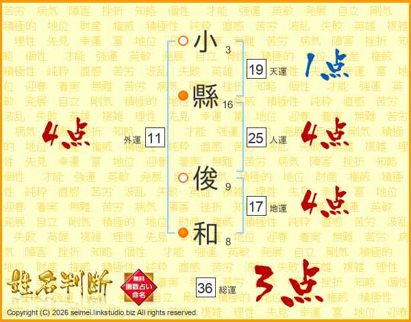 小縣俊和さんの人運は25画の4点!