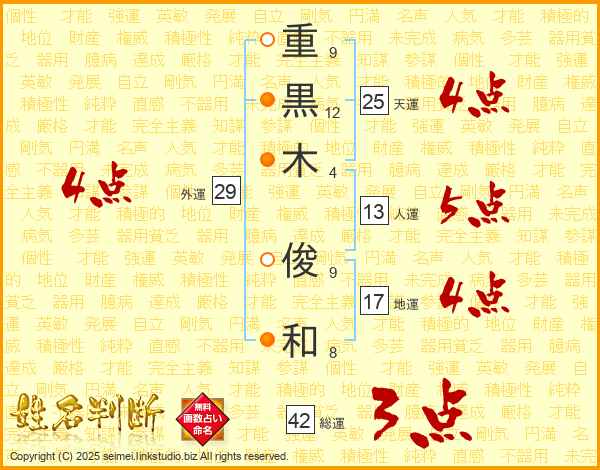 重黒木俊和さんの天運は25画の4点!