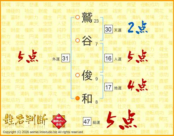 鷲谷俊和さんの総運は47画の5点!