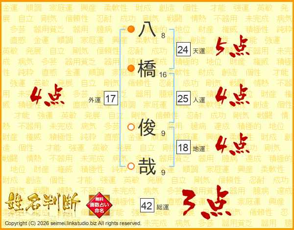 八橋俊哉さんの天運は24画の5点!