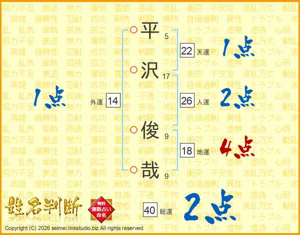 平沢俊哉さんの天運は22画の1点!