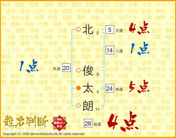 北俊太朗さんの総運は29画の4点!