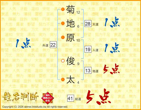 菊地原俊太さんの総運は41画の5点!