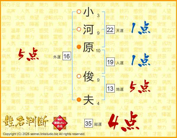 小河原俊夫さんの総運は35画の4点!