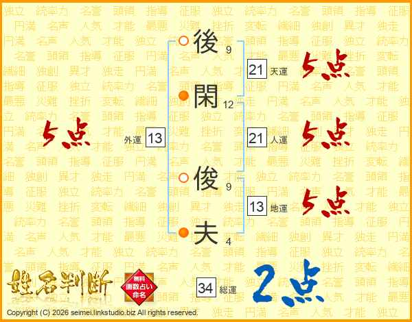 後閑俊夫さんの天運は21画の5点!
