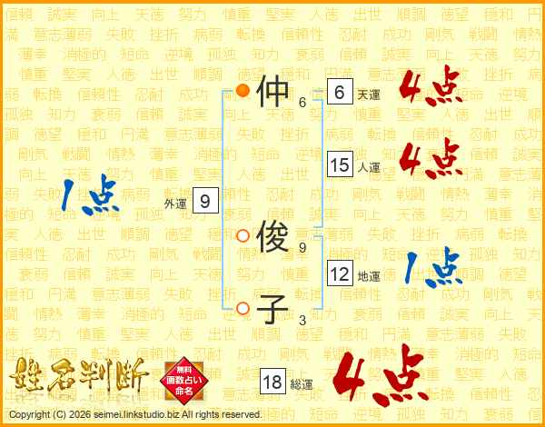 仲俊子さんの総運は18画の4点!
