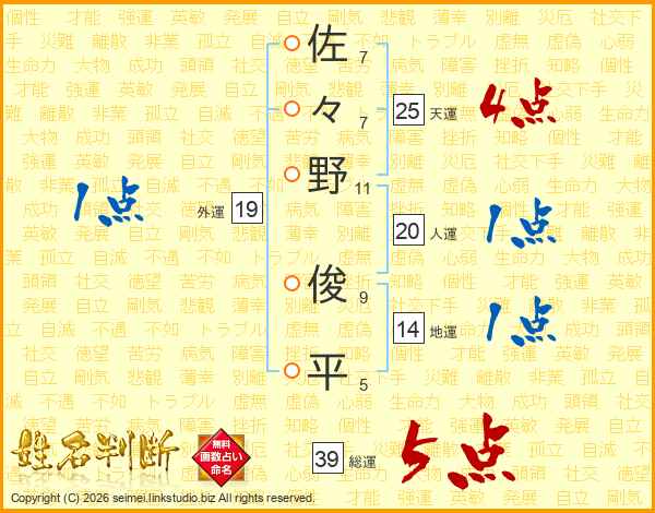 佐々野俊平さんの総運は39画の5点!