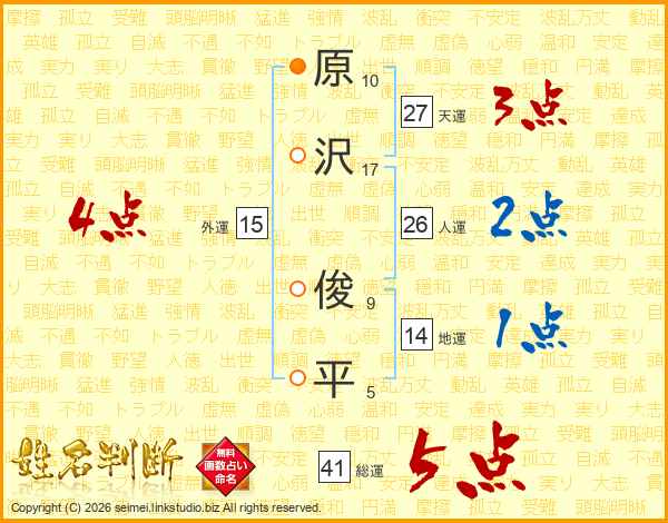 原沢俊平さんの人運は26画の2点!