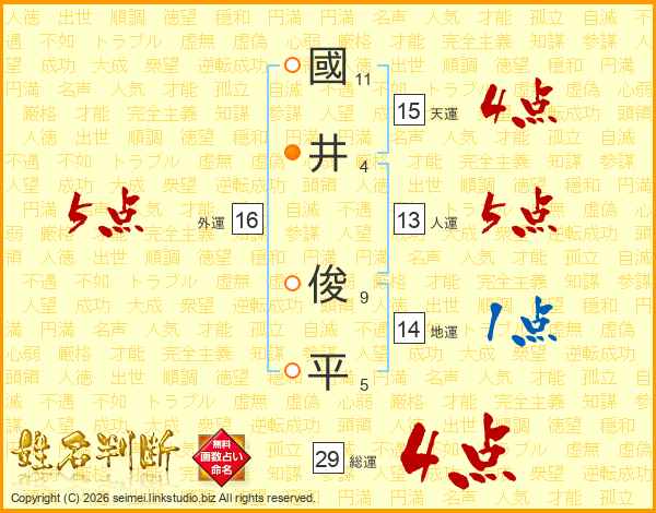 國井俊平さんの総運は29画の4点!