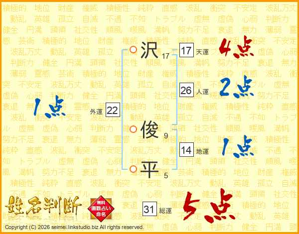 沢俊平さんの総運は31画の5点!