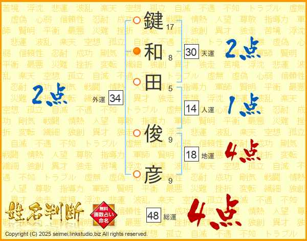 鍵和田俊彦さんの天運は30画の2点!