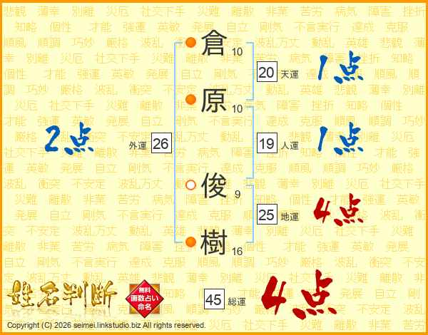 倉原俊樹さんの総運は45画の4点!