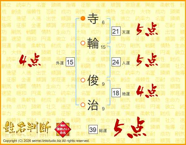寺輪俊治さんの総運は39画の5点!